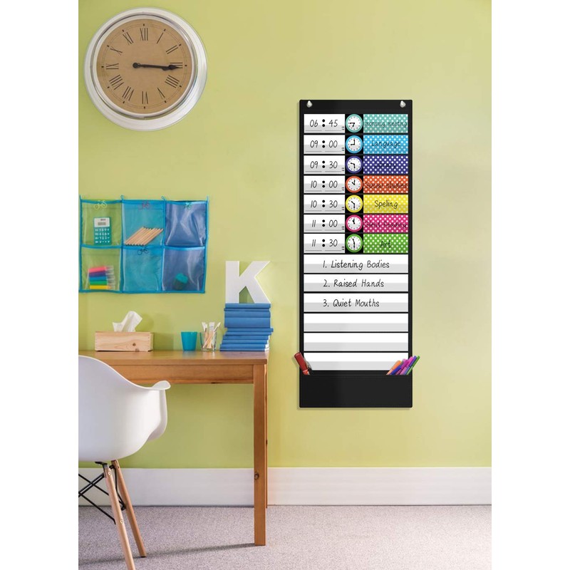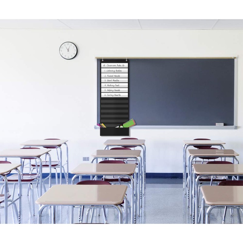 - Pocket Chart for Classroom - Daily Schedule Black Hanging Foldable Pocket Chart with 13 Plastic Pockets – 1 Storage Pockets