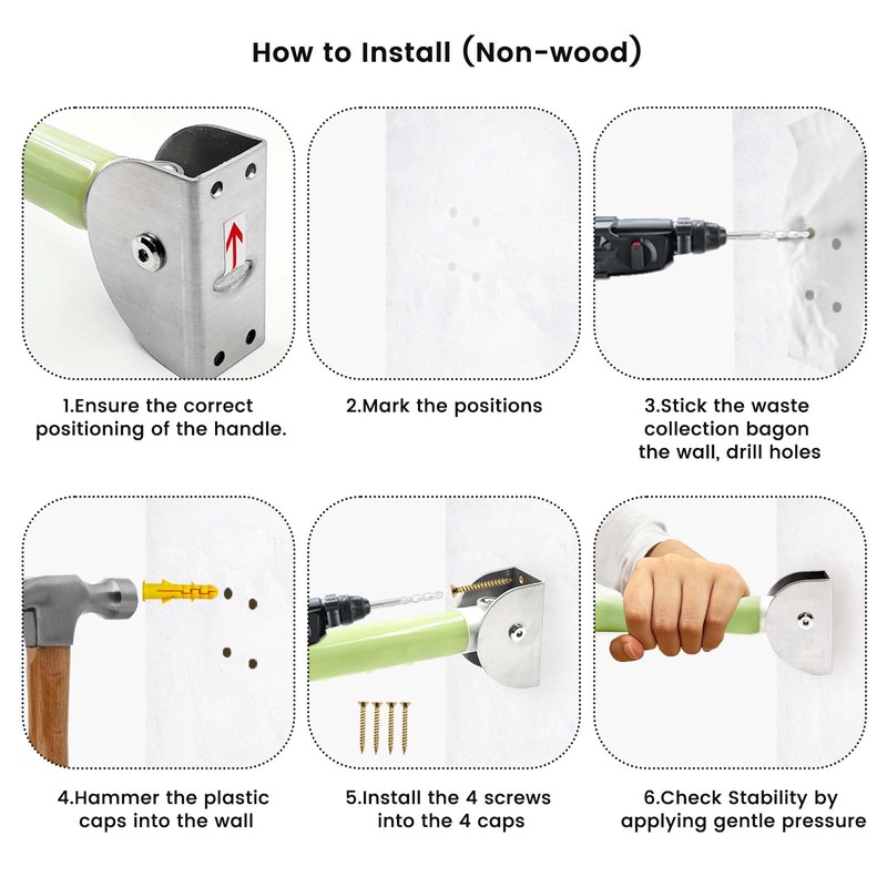 - 【Dual Installation & Clean Setup】According to different wall surfaces, we have screws for wooden materials and expansion screws for hard materials for quick and easy installation.We also provide dust bags to prevent your room from getting dirty during drilling, saving you time and effort.NOTE:Ensure the correct positioning of the handle before installation.