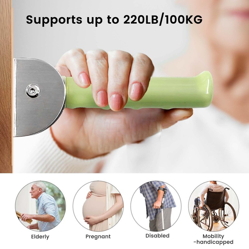 - 【Always Visible Nightlight Handle】The glow-in-the-dark doorway handle automatically lights up in dim areas, making it easy to find support when moving through doorways at night. The doorway assist handle can prevent elderly people from falling when they wake up at night, adding more security to your family.