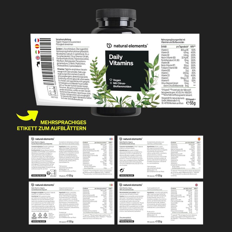 - Sensibly combined: with all B vitamins including biotin, vitamins A, C, D, E & K and citrus bioflavonoids. Especially for sports fans, vitamin B1 and B6 are more dosed for energy and muscle support - and packed in small capsules. Yeah!