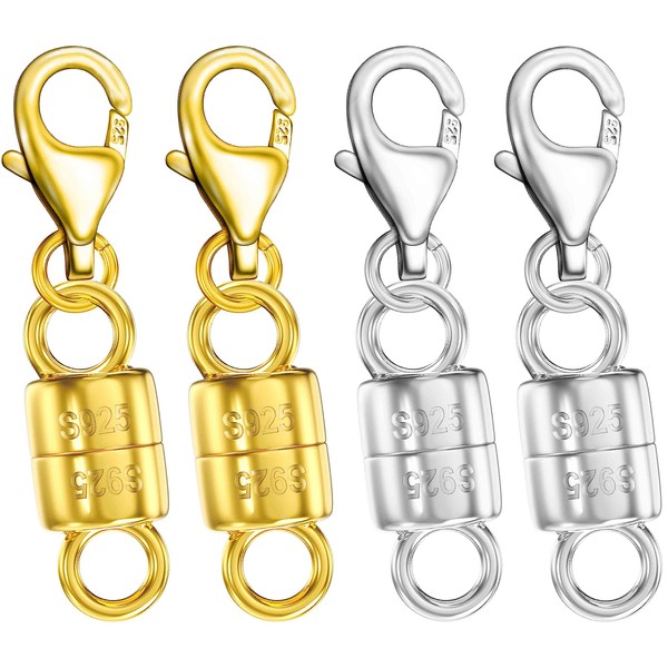 Dailyacc 925 Silver Lobster Magnetic Necklace Clasps and Closures Safety Sterling Silver with 14K Gold Jewelry Converters for Bracelets Chain Extender