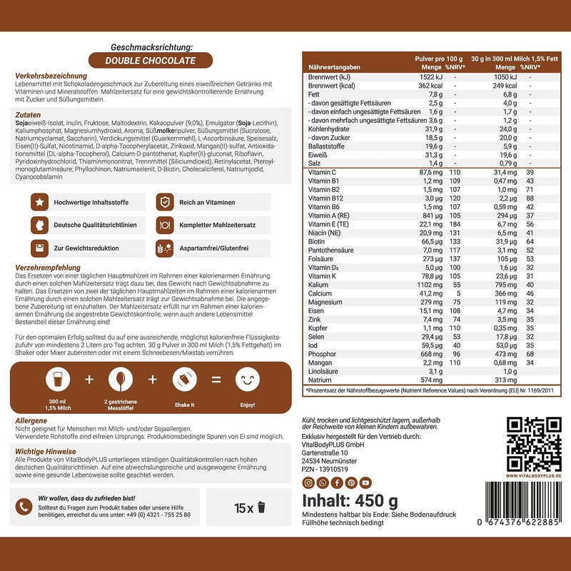 - Low-calorie diet shake: with only 250 kcal per meal and 24 valuable vitamins and minerals, our vegetarian meal replacement provides you with everything you need.