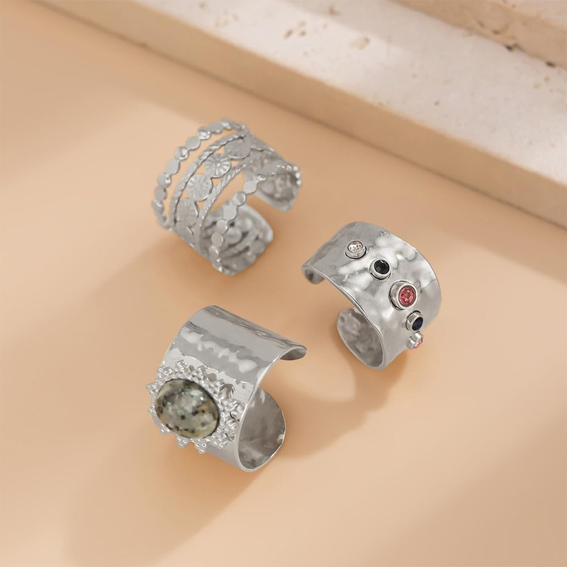 - [Dainty Gold Wide Band Ring Set]Dainty yet bold, our gold wide band ring set for Women features an adjustable silver band that's ideal for chunky fashion lovers. The crystal-embellished open thumb and knuckle rings add a touch of vintage punk charm to your jewelry accessories. Each ring showcases irregular geometry and personalized zircon accents, making a statement wherever you go