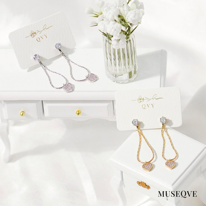 - Our dainty CZ heart drop earrings add an elegant touch to any outfit with their comfortable, lightweight design. The small yet sparkling heart charm is sure to catch the eye. Each earring is carefully handpicked for its exceptional quality.