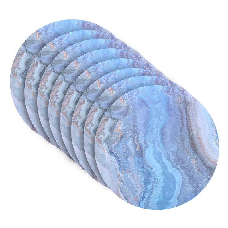 Add style to your dinner party with these luxurious printed cork placemats. Available in several shapes to fit in each dining experience. Each set contains 8 pieces. These placeamats protect your table, while bringing elegance to the dining table. The foiled print gives the placemats stylish and exquisite look. These placemat feature a cork backing for more durability, heat resistance, and table protection. They are perfect for indoor and outdoor. Easy to clean.