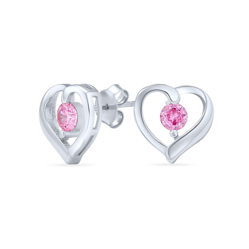 - Cherished Heart Design" – These sterling silver heart-shaped studs feature an endearing cut-out style, adorned with a captivating pink simulated topaz CZ at their core. Their playful and romantic vibe makes them an ideal choice for weddings, Valentine's Day, or anniversary gifts.