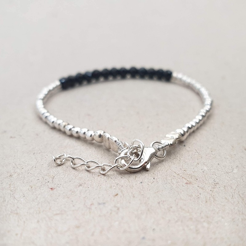 Dainty Natural Black Spinel Beads Bar Bracelet Sterling Silver Gemstone Beaded Jewelry Crystal Healing
