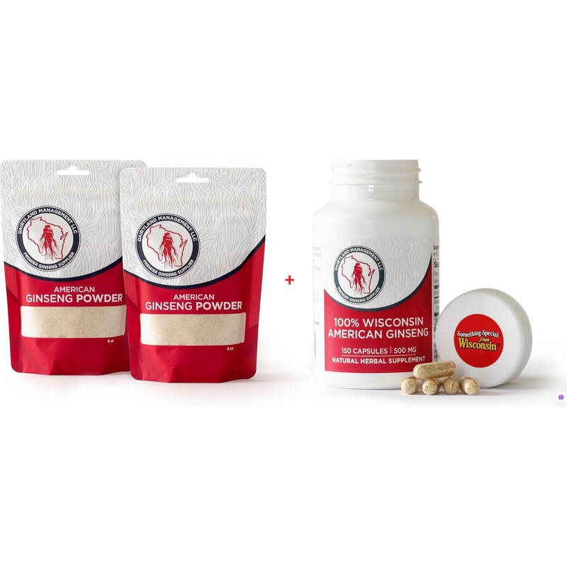 Dairyland American Ginseng Powder 16 oz and Capsules 150 ct of Wisconsin Ginseng – Direct from Farmer to Consumer 西洋参