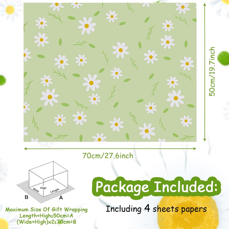 - 💐 Package Included: Including 4 sheets papers in 1 designs, give you a lot of wrapping papers for all occasions. Be ready for any occasion with the Daisy Wrapping Paper Bundle.