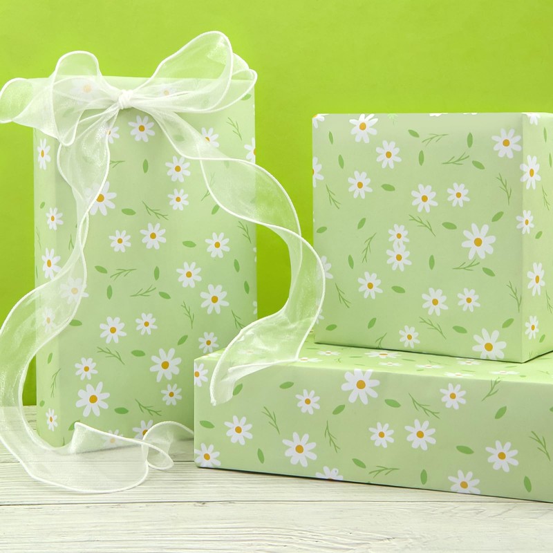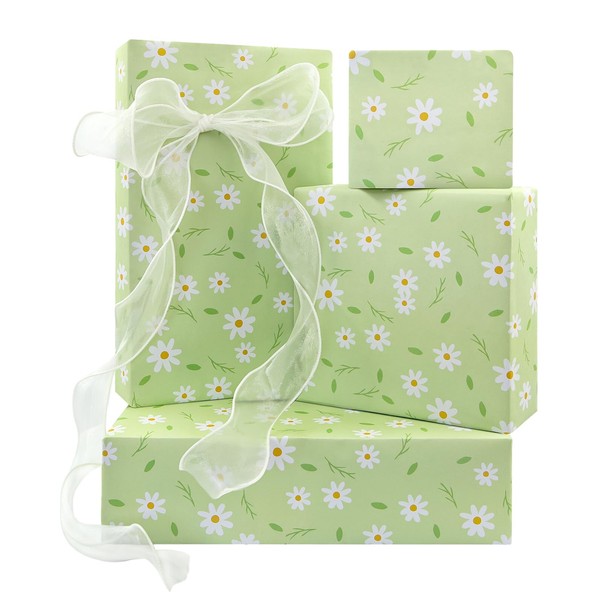 - 🌼 Elegant Daisy Design: This wrapping paper features white and yellow daisy flowers in various sizes and green leaves design printed on light green art paper. Floral wrapping paper symbolizes purity and nobility, easily elevate any gift and brighten celebrations year round.