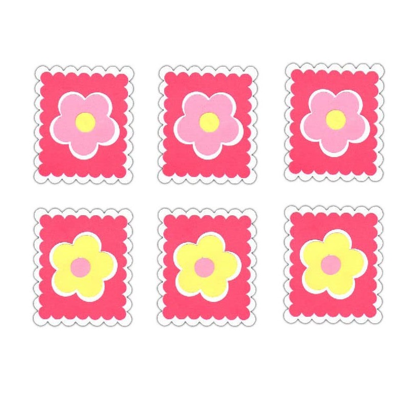 - Each card topper is finished off with a daiy flower shape in either pink or yellow.