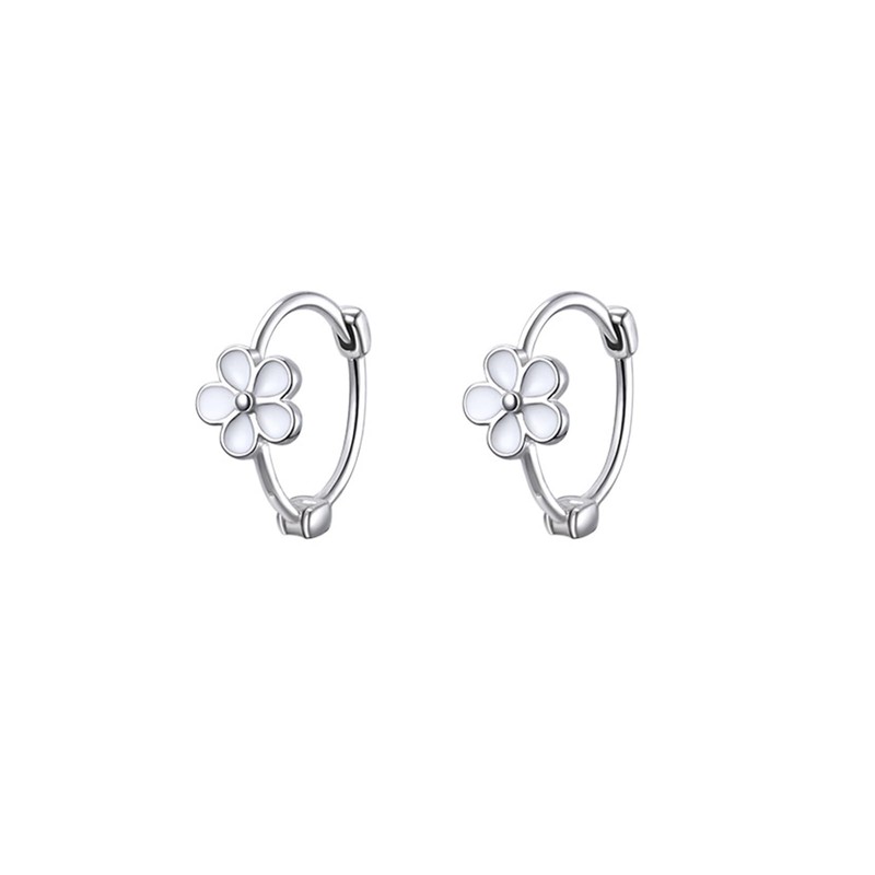 Daisy Hoop Earring for Women Sterling Silver Huggie Hoop Earrings Mini Hoop Flower Earrings Small Hoop Earrings Jewelry Gift (Silver)