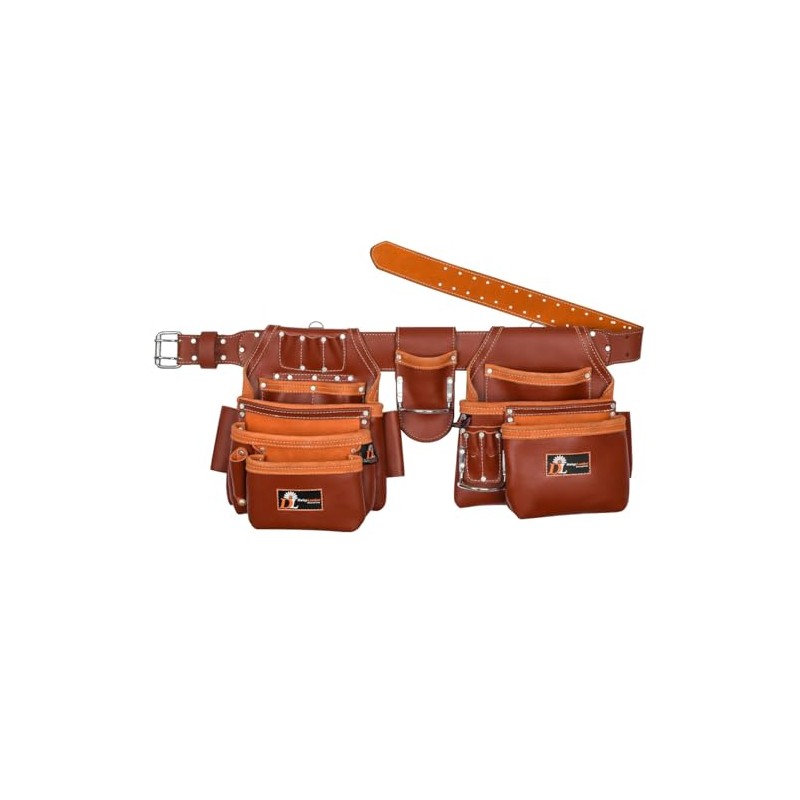 Daisy Leather Tool Belt Pro-202, 31 Pockets, Top Grain Leather, 2.5-inch Padded Belt, Fits 32-52 inch Waist, X-Large (Chocolate, X-Large)