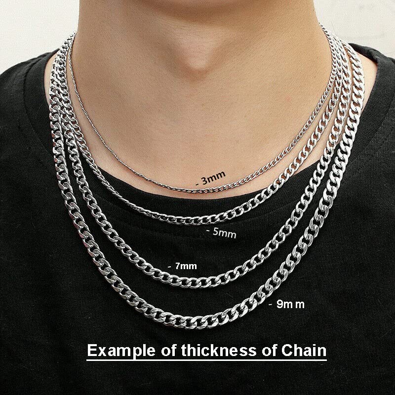 Daisy Philip 3mm 5mm 7mm 9mm CURB Mens Necklace Silver Chain Cuban - Stainless Steel Jewellery - Neck Link Chains for Men Man Women Boys Kids (50cm*5mm)