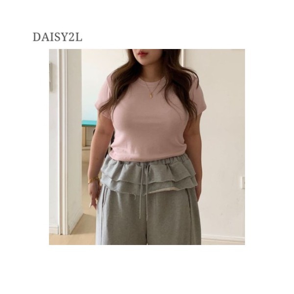 DAISY2L Essential Semi-Crop Soft Stretch Round Neck T-Shirt 1ea, Color#$%Size:Gray-One Size