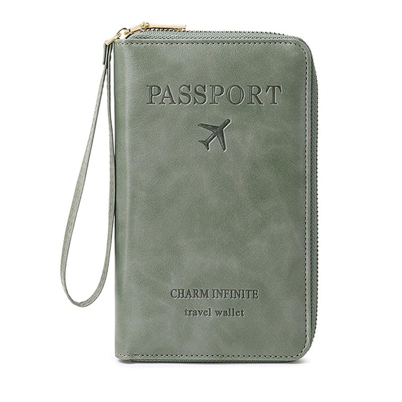 DAITET Passport Holder for Women Men RFID Blocking Travel Wallet Passport Holder Card Slots Document Organizer Wrist Strap, Stylish Green