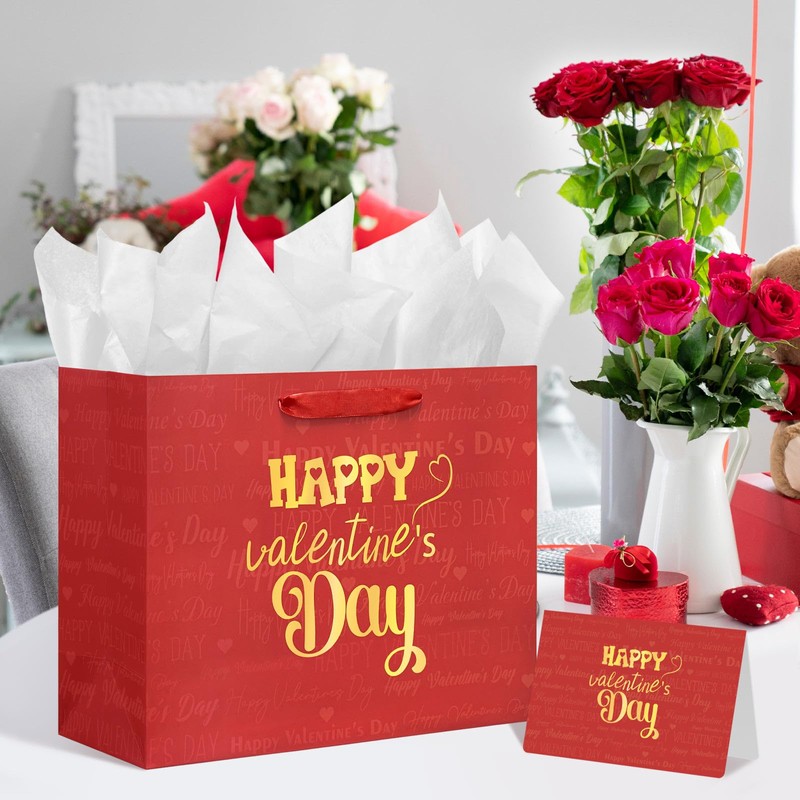 - Package Include: This package set includes 1pcs Happy Valentine's Day gift bag, 3 sheets of white wrapping paper, 1pcs greeting cards, providing everything you need for perfect gift presentation.