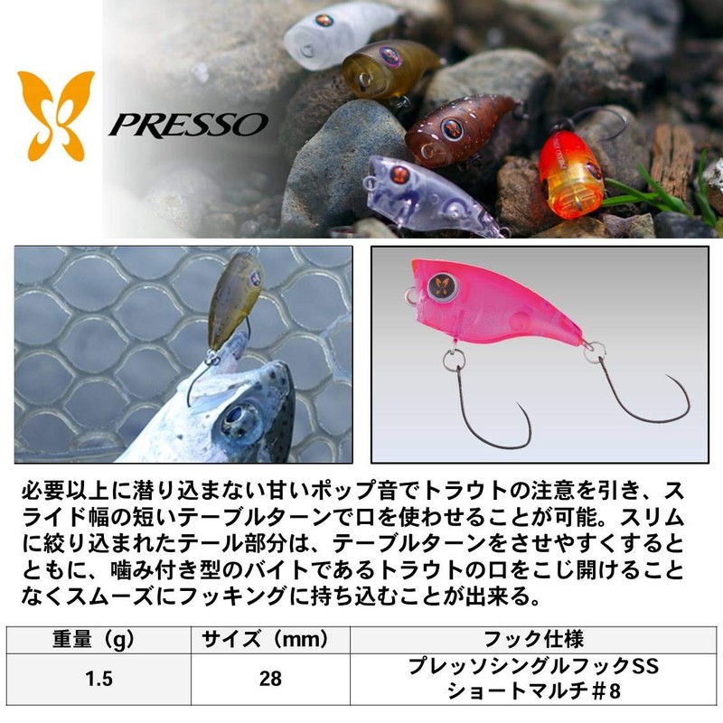- Hook Specifications: Presso Single Hook SS Short Multi #8