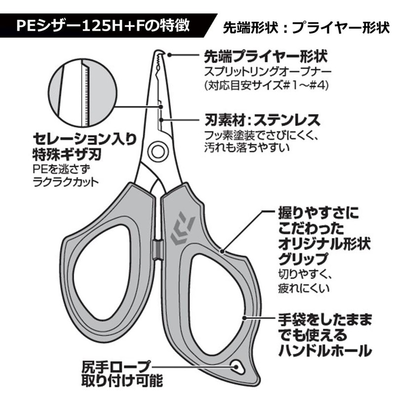 DAIWA Line Cutter PE Scissor 125R+F, Black