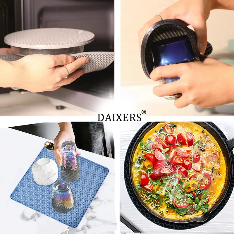 Daixers 2 Pack Silicone Trivet Mat, Hot Pads Non-slip Insulation Mats for Home Kitchen (Blue)