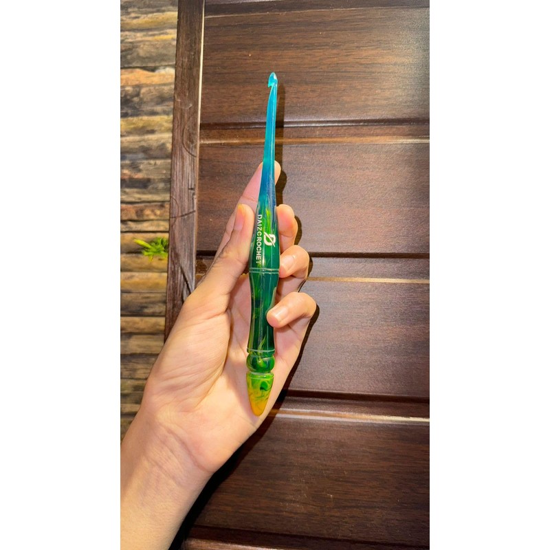 DAIZ CROCHET Resin Crochet Hooks | Hooking Tool for Crocheting | Handcrafted 7’’ Knitting Needle and Craft Yarn Weave with Handle Crochets Hook (Green & Yellow, 5.5 mm)