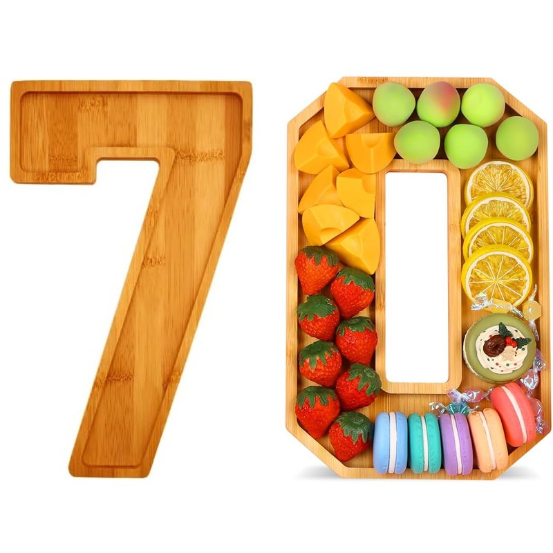 - 【Wide Application】: These wooden serving trays are suitable for baby showers, 70th birthdays, 70th anniversaries, wedding parties, gender reveals and wedding parties. With their versatile design, these wooden 70 charcuterie numbers tray can match a wide range of themes and decorations, the number shaped serving trays can be filled with a variety of treats, including cupcakes, chocolates, candies, meats and fruits, making it a good addition to celebrations and party gatherings.