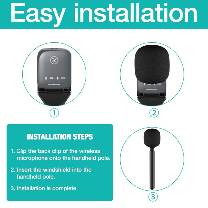 - Stand holder for 1/2 – easily transform your wireless microphone into a handheld microphone, equipped with a high-quality wind protection that effectively reduces wind and ambient noise, ensures clear recording and increases the professional level of your interviews and presentations.