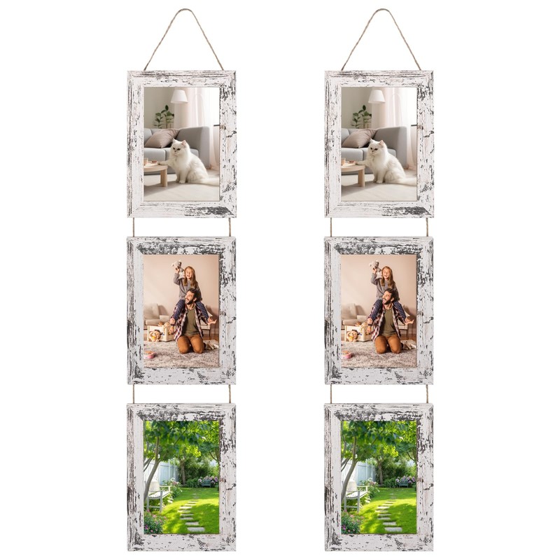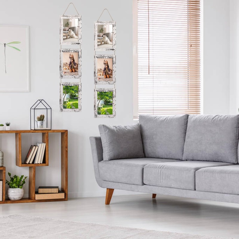 - Matching fashion: 4x6 hanging wooden photo frame brings rustic charm and character to your home, triple wall-mounted design, make it a home decoration.Suitable for living room, kitchen, bedroom, photo studio, etc