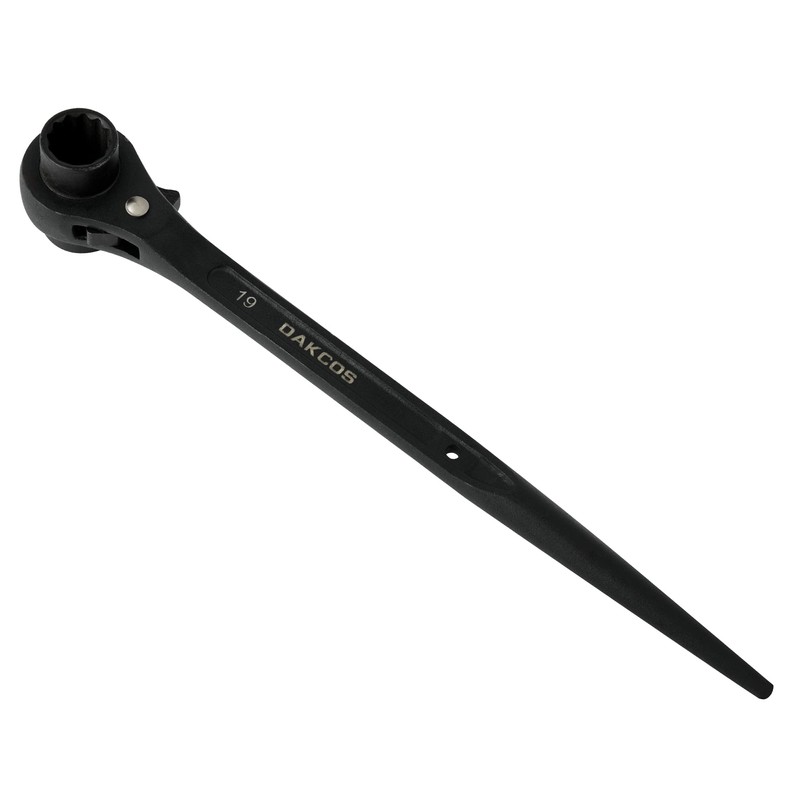 DAKCOS 19mm×22mm Ratchet Podger Spanner, 12 Point Double Ended Socket Scaffold Spud Wrench (Black)