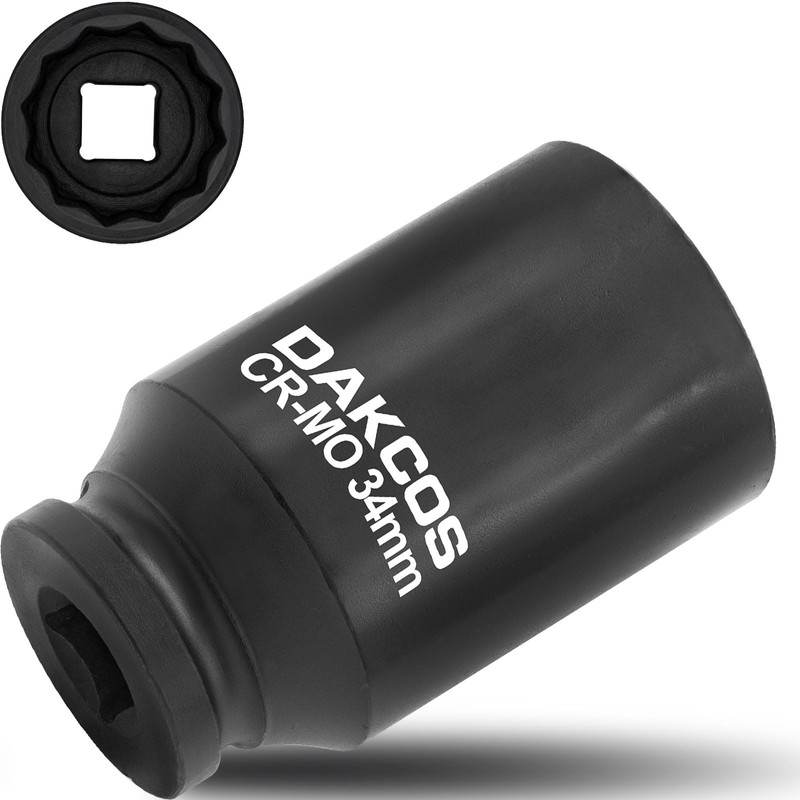 DAKCOS 34mm Socket 1/2" Drive 12 Ponit Impact Wrench Socket Drive Shaft Tool Power Socket, CR-MO Deep Socket