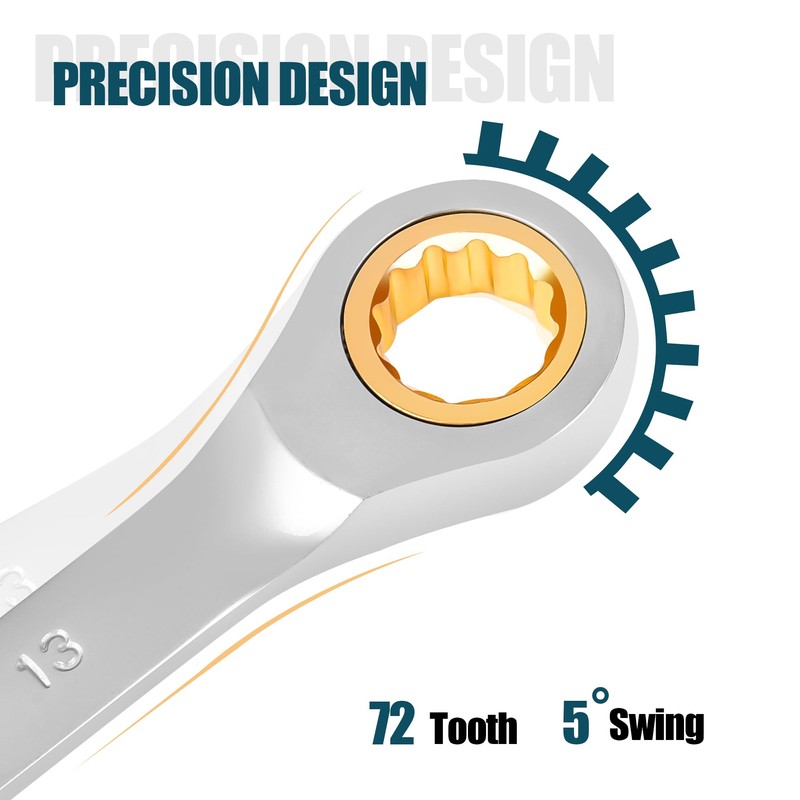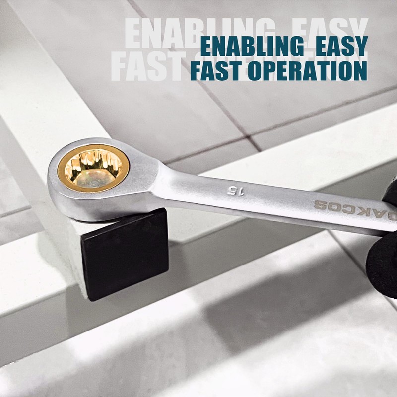 DAKCOS Fixed Head Ratchet Spanner 17mm Ratcheting Combination Wrench Chrome Vanadium Steel