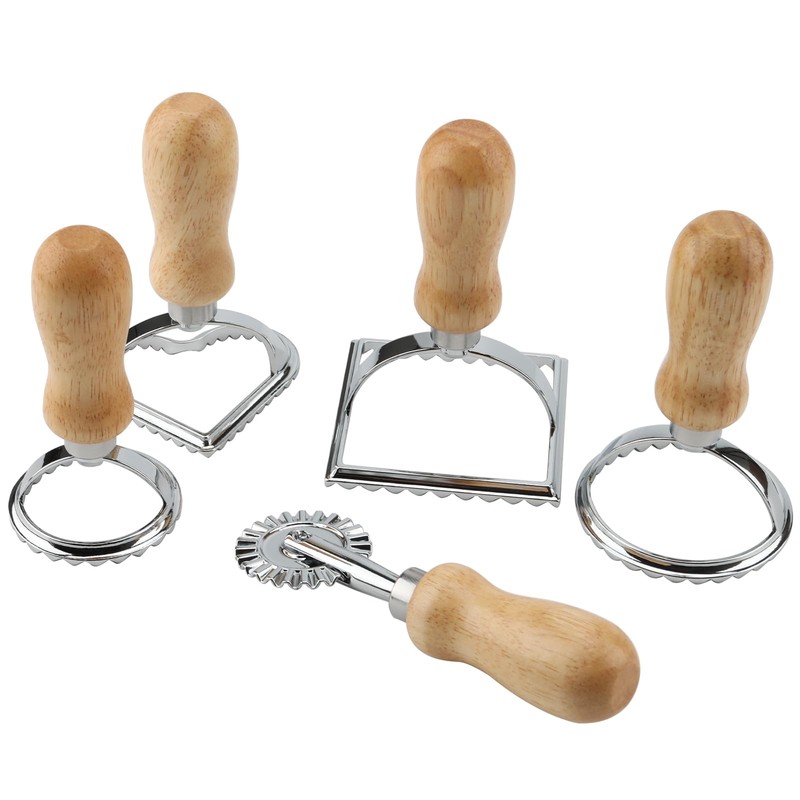 - 5-PIECE RAVIOLI CUTTERS SET - This set includes 4 ravioli stamps (6.3cm round ravioli cutters, 5cm round ravioli cutters, heart ravioli cutters, square ravioli cutters) and a ravioli cutter wheel. Different sizes and shapes are available to meet all your needs.