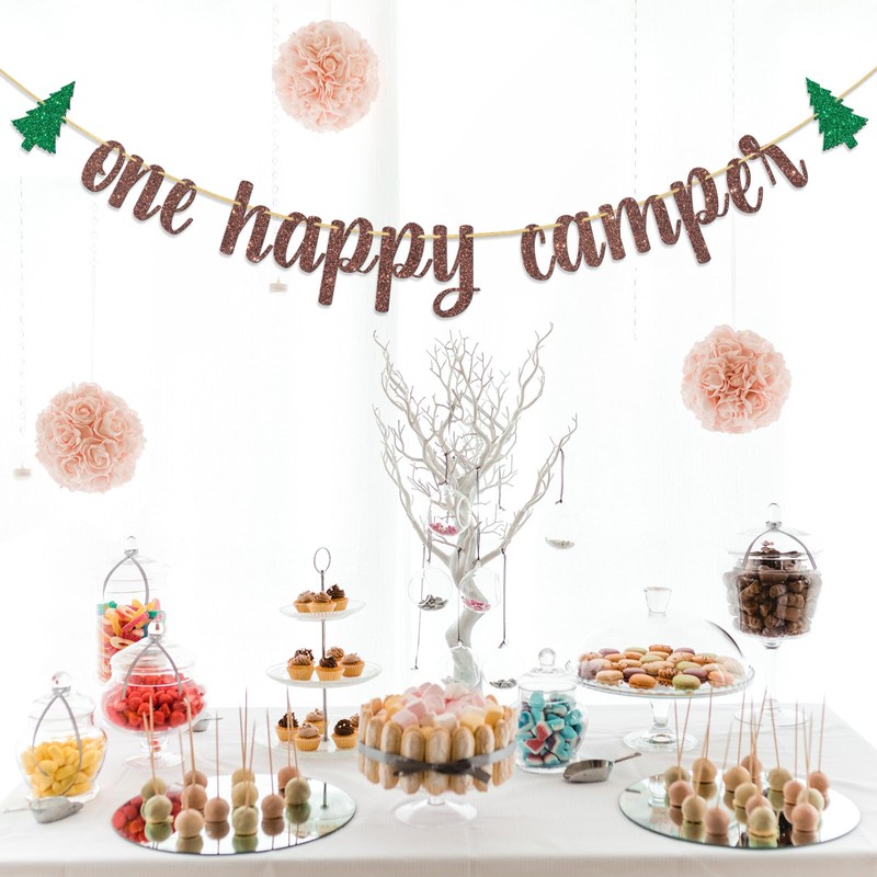 - 【What You Will Get】1pcs brown glitter "one happy camper" slogan, very suitable for kid's first birthday parties, camping theme one-year-old birthday parties, happy camper parties, adventure theme 1st birthday parties, one-happy camper birthday decorations, lumberjack first birthday parties, adventure baby showers, big theme foot birthday parties, buffets, dinners, friends' gatherings, and family gatherings.