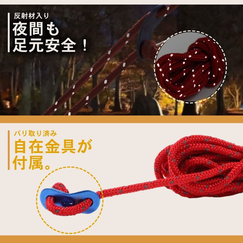 - Reflective Material: With a stylish design and beautiful colors, it also goes well with tents and tarps such as Snow Peak and Coleman. The reflective material makes it highly visible at night, making it ideal for families with small children