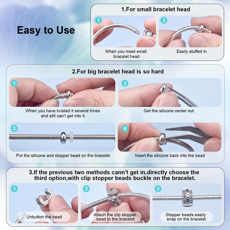 - Instruction Attention: If you can not put this charms on your bracelet, ① Please get the rubber ring out of the silver ring,then put the rubber rung on your bracelet or chain. ② Put the silver ring on your bracelet or chain. ③ Please out the rubber ring into the silver ring again. See video for details.