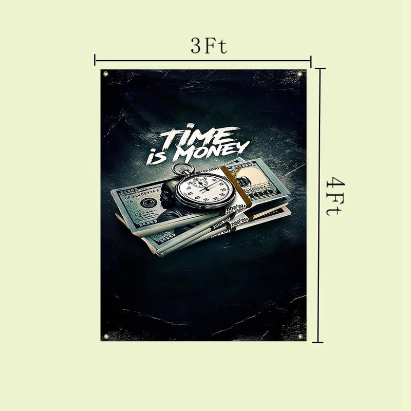 dalavoai Time is money tapestry 3x4 Ft Funny inspirational quotes decorative banner for room dorm office