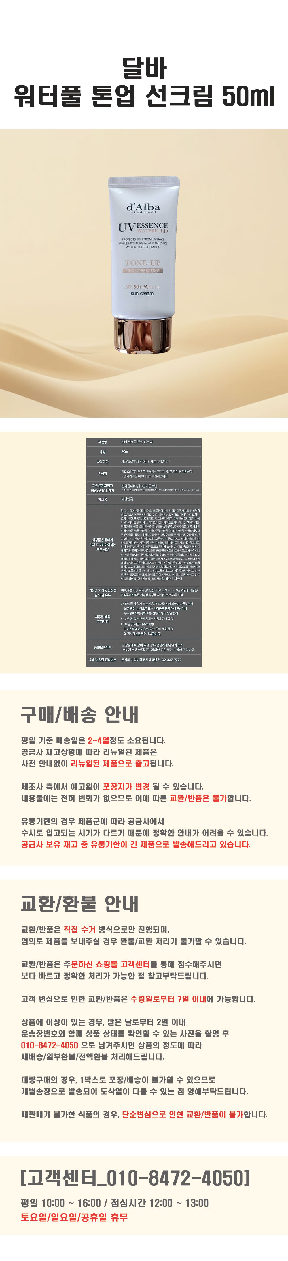 Dalba 달바 워터풀 톤업 선크림 50ml Dalba Waterful Tone-Up Sun Cream 50ml