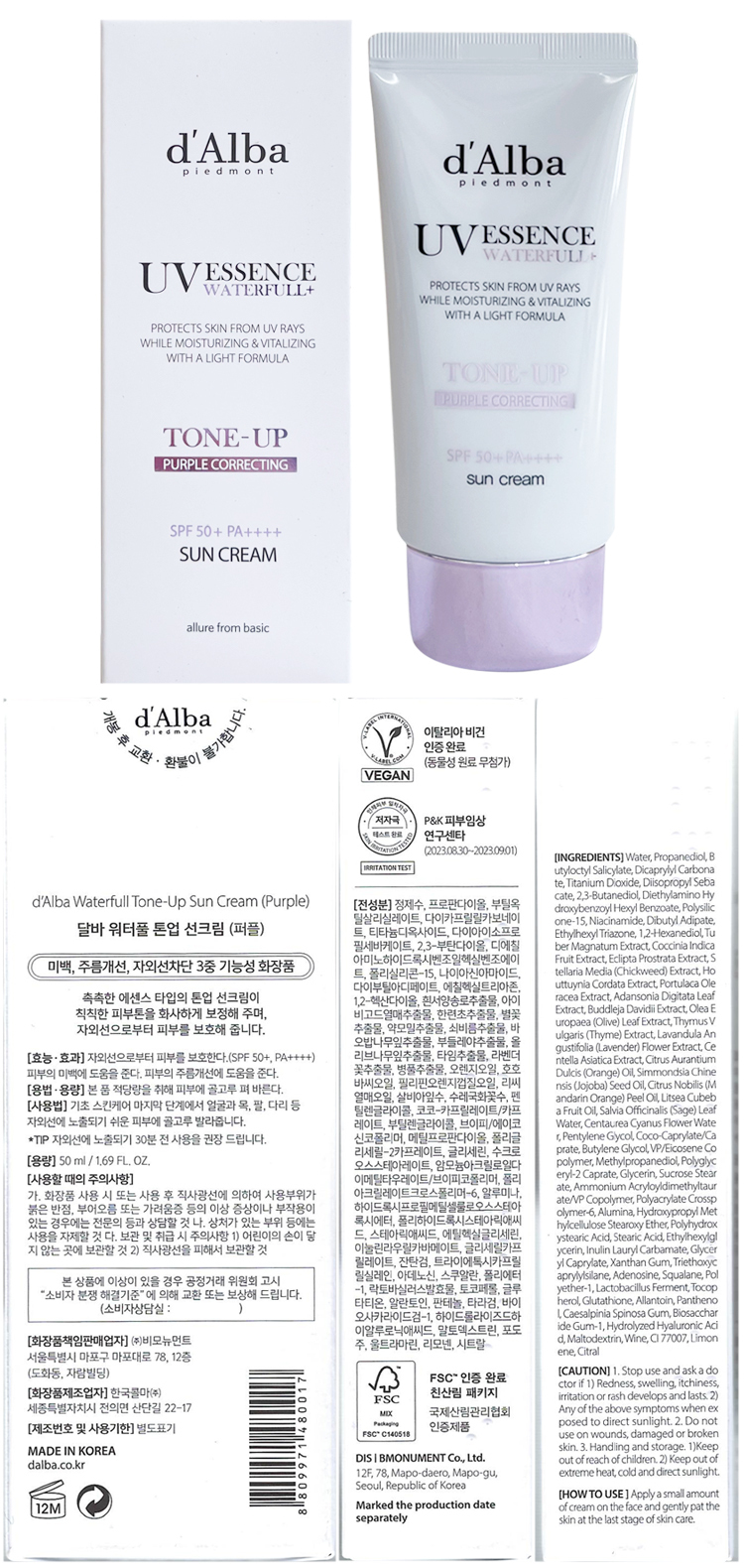 Dalba 달바 워터풀 톤업 퍼플 코렉팅 선크림 50ml(SPF50+) / 써클 Dalba Waterful Tone-Up Purple Correcting Sunscreen 50ml (SPF50+) / Circle