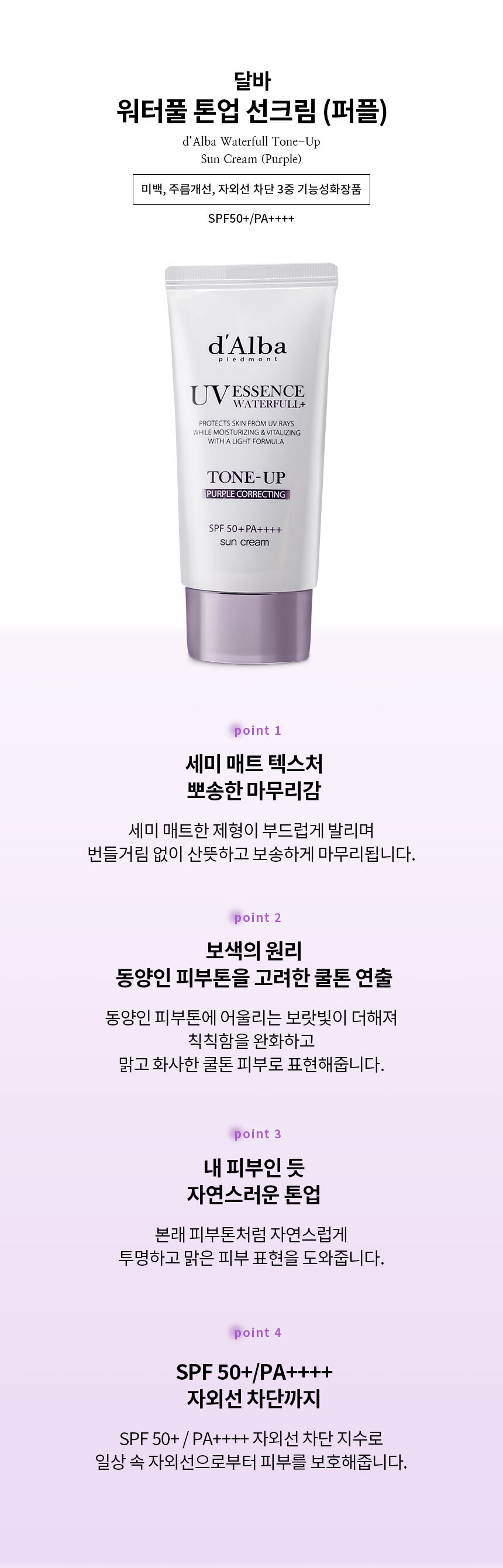 Dalba Waterful Tone-Up Purple Correcting Sun Cream 50ml (SPF50+) 1 Ss / 달바 워터풀 톤업 퍼플 코렉팅 선크림 50ml(SPF50+) 1개 Ss