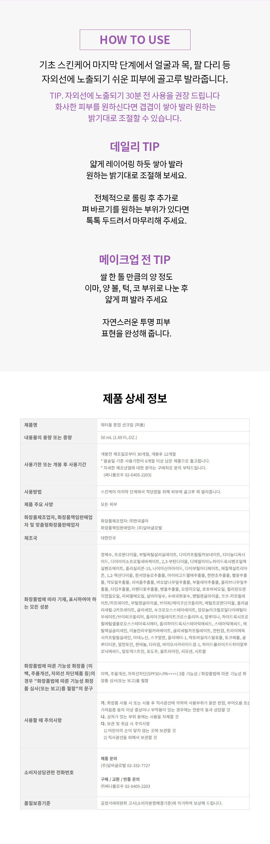달바 워터풀 톤업 퍼플 코렉팅 선크림 50ml(SPF50+) 1개 Ss