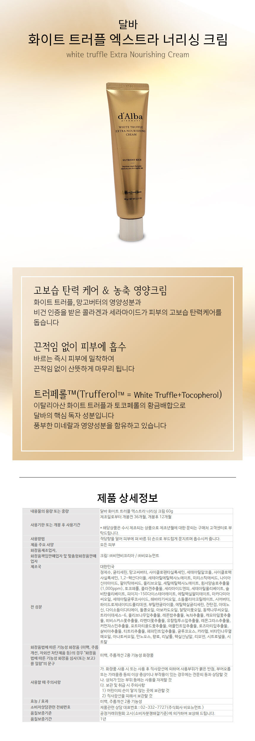 Dalba White Truffle Extra Nourishing Cream 60g 2 Ss / 달바 화이트 트러플 엑스트라 너리싱 크림 60g 2개 Ss