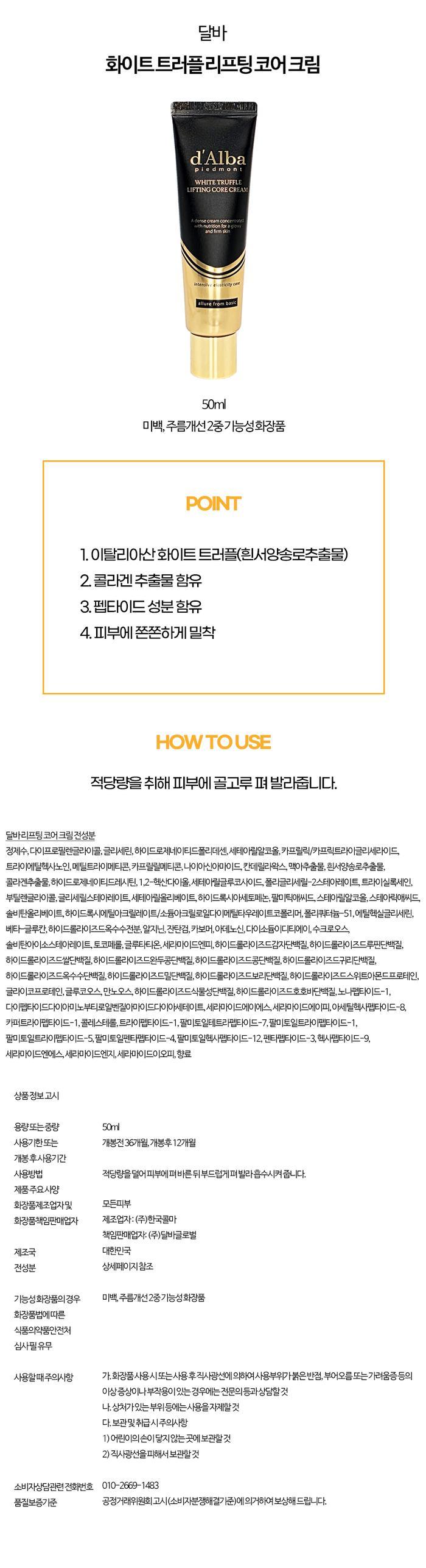 달바 화이트 트러플 리프팅 코어 크림 50ml