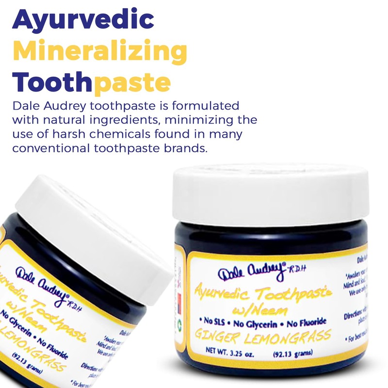 Dale Audrey Ayurvedic Mineralizing Tooth Paste for Sensitive Teeth | Organic Ginger Lemongrass Flavor Teeth Whitening and Fresh Breath | Natural Toothpaste, Vegan (3.25 Oz)