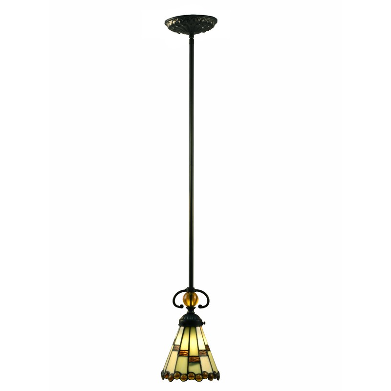 - The Pendant features a cone shade crafted of golden Amber glass wedges set side by side