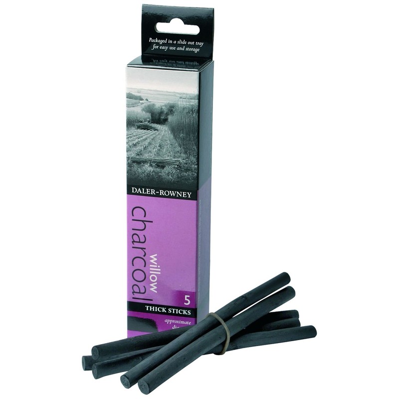 Daler Rowney 808030005 Thick Charcoal (5 Sticks), Black