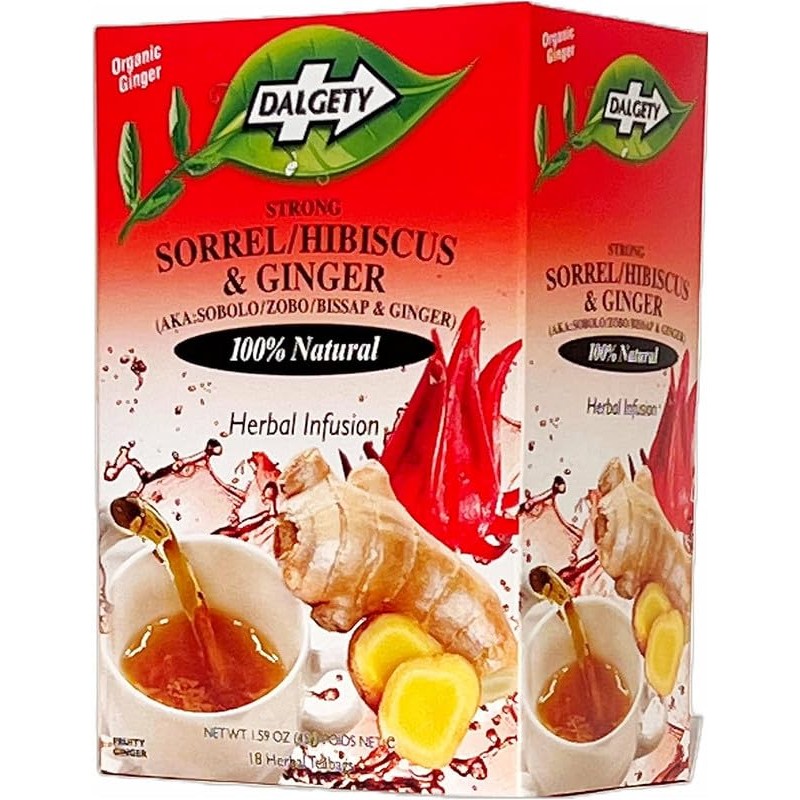 Dalgety Sorrel/Hibiscus & Ginger Herbal Infusion 6x45g Cartons (6 Pack) 100% Natural, Caffeine-Free Tea (Total 108 Teabags); Our Delicious Tea Builds the Immune System, Fights Fatigue & Boosts Energy