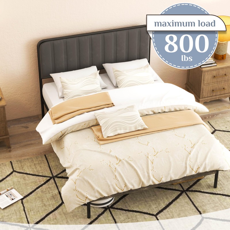 DALISK Queen Bed Frame with Upholstered Platform Headboard, Steel Slat Support, Effortless Assembly, Non-Slip, Noise-Free and No Box Spring Needed, Ample Storage Space - Charcoaly Black