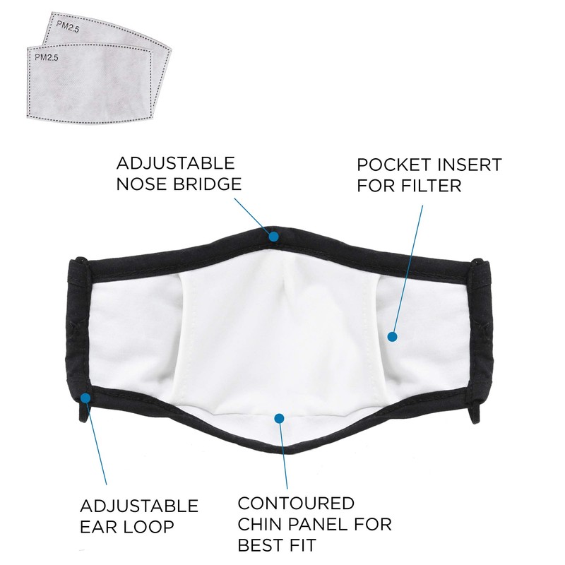 - 3 Layer Face Mask, Filter Pocket with PM 2.5 filter (2 Included)