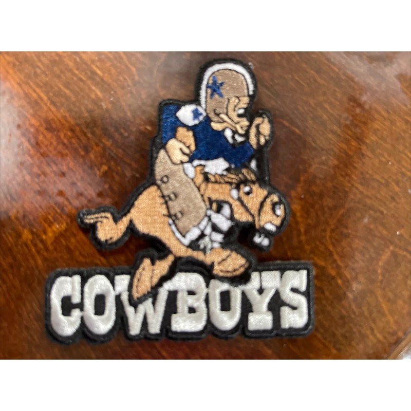 Add a touch of vintage to your Dallas Cowboys collection with this embroidered iron-on patch. Measuring 3 inches by 2.75 inches, this patch features the iconic Cowboy Joe design and is perfect for adding flair to your fan apparel or souvenirs. Made for fans of the National Football League (NFL) and the Dallas Cowboys, this patch is a must-have for any avid collector. The patch is easy to attach and will last for years to come.