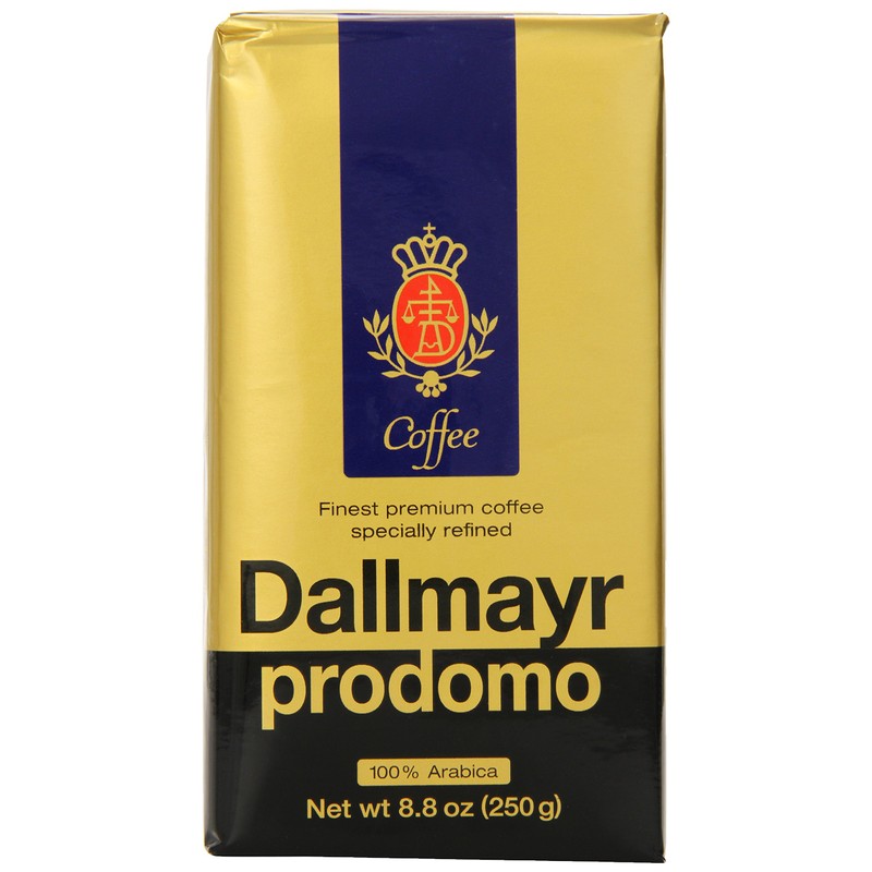 Dallmayr Prodomo Ground coffee Net weight 8.8oz/250g Dallmayr Prodomo is a superior blend of the finest coffee varieties grown in highland regions. Dallmayr Prodomo Coffee is specially processed to remove irritants and bitterness while retaining its full measure of stimulating caffeine. Thus, for those who are sensitive to the irritating effects of coffee, Dallmayr's Prodomo coffee is a great enjoyment. The Dallmayr "full flavor" roasting process brings out the unique Prodomo taste.
